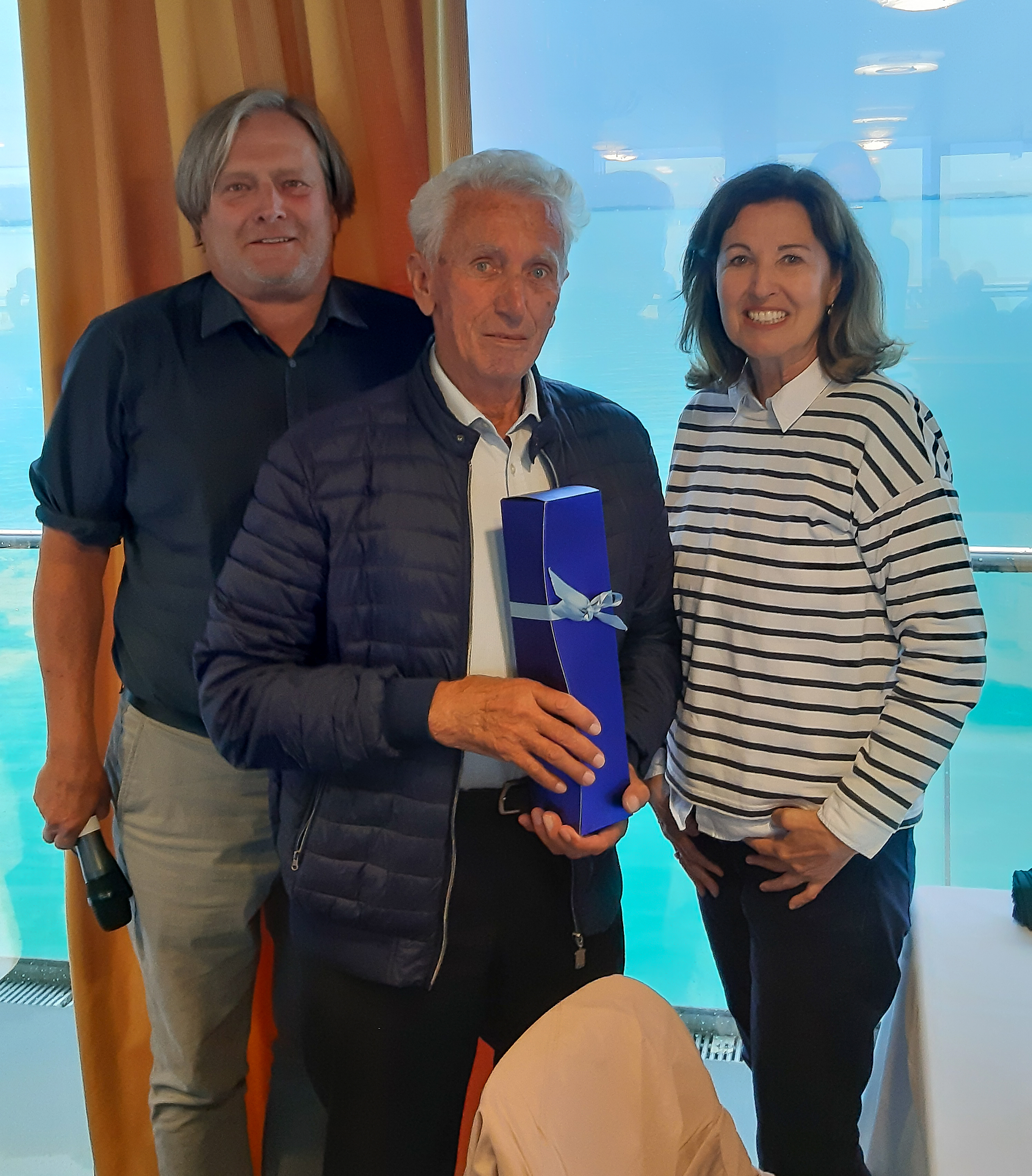 Vom Oberdeck aus genossen die Gäste einen herrlichen Blick auf das schweizerische, deutsche und österreichische Bodenseeufer. Bei Kaffee und Kuchen gab es dann viel zu erzählen seit dem letzten Ausflug im Herbst 2021. Das Highlight: Beim Quiz zur Länge der Sonnenkönigin konnte sich Josef Sailer als Gewinner über einen Preis von der Ölmühle Sailer freuen. Gegen 17.00 Uhr legte das mächtige Schiff wieder im Bregenzer Hafen an und entließ die gut gelaunten Lochauer SeniorInnen bequem und sicher auf ihre Heimreise per Bahn.