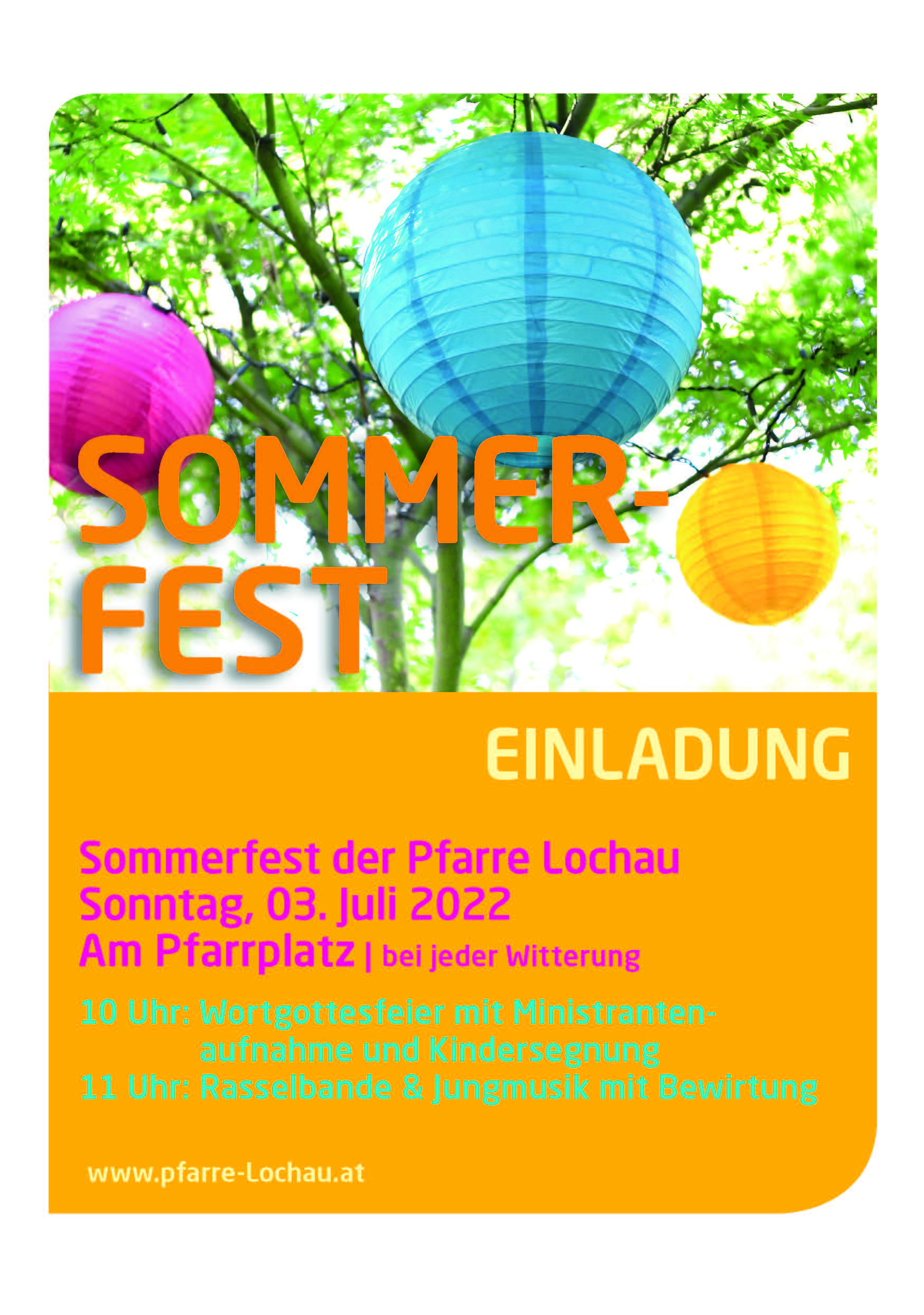 Die Pfarre Lochau lädt zum Sommerfest mit musikalischer Unterhaltung durch die "Rasselbande" und die "Jungmusik" des MV Lochau ein.