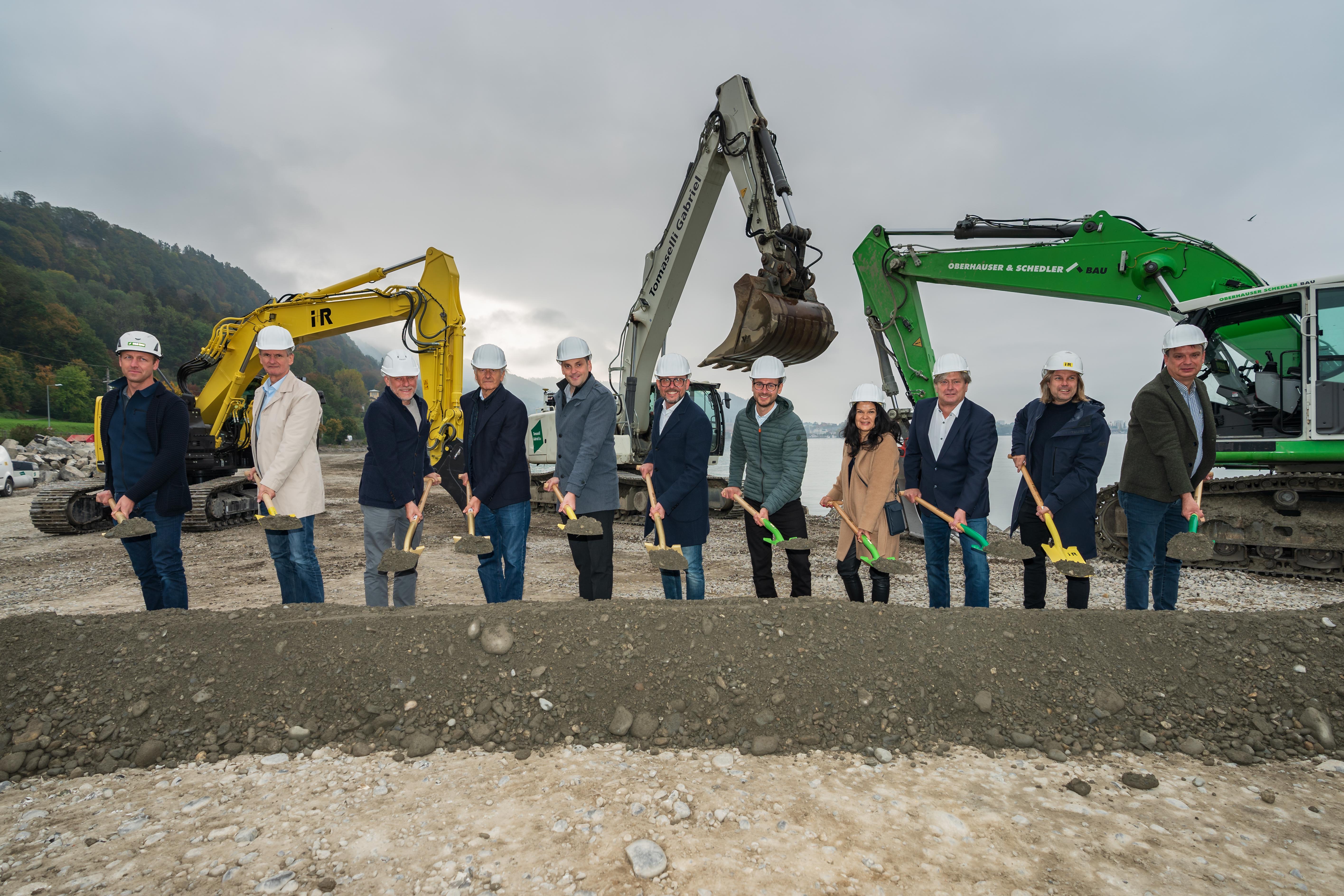 Am 12. Oktober haben Bürgermeister Michael Ritsch und der Vorarlberger Mobilitäts- und Klimaschutzlandesrat Daniel Zadra im Beisein weiterer Gäste den Spatenstich für die dritte und finale Etappe zur Neugestaltung der Pipeline in Bregenz gesetzt. Davon betroffen ist die rund 900 Meter lange Strecke vom Klausgraben bis zum Lochauer Strandbad. Wie bereits bei den vorangegangenen zwei Abschnitten geht es unter anderem um die konsequente Trennung des Radverkehrs vom Fußweg. Außerdem soll durch die Einbringung von ca. 100.000 m3 Schüttmaterial in den Seegrund ein ökologisch wertvolles Flachufer entstehen. Auch eine rund 280 Meter lange neue Ufermauer wird gebaut.