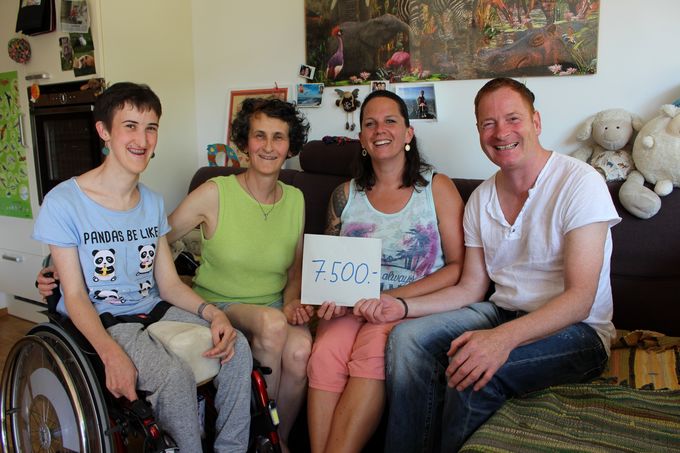 In Dornbirn freuten sich Katharina Urbanz und ihre Mama Daniela Buchhäusl über die willkommene finanzielle Hilfe in Höhe von 7.500 Euro. Seit ihrer Geburt ist Katharina auf den Rollstuhl angewiesen, nun kann mit diesem Geld ein spezielles Elektro-Fahrrad zur Stärkung ihrer Muskulatur als dringende Notwendigkeit angekauft werden.