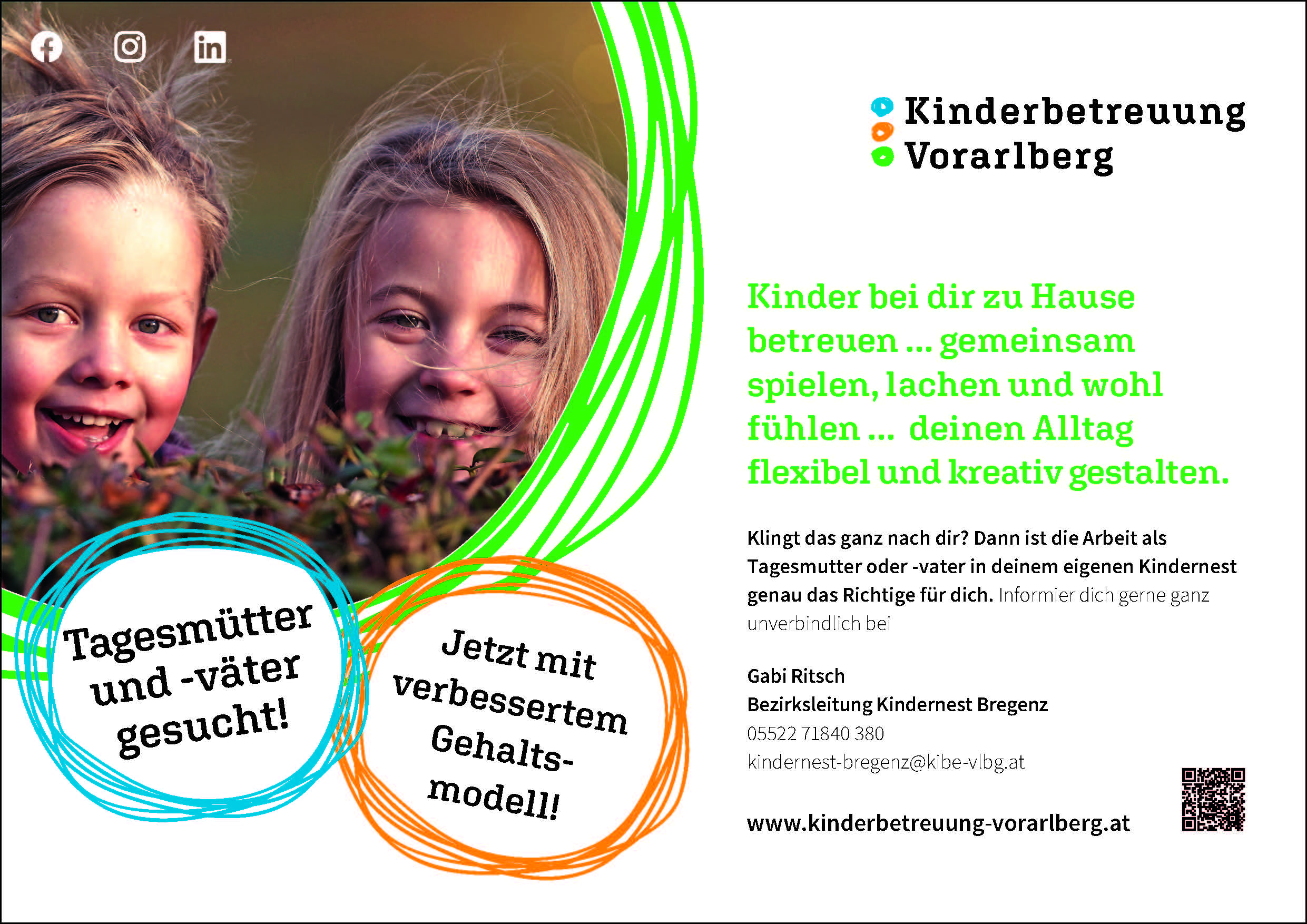 Mag.a Angelika Hagspiel, Geschäftsführung der Kinderbetreuung Vorarlberg gGmbH, freut sich sehr über das neue Modell: „Wir haben eine bedeutende finanzielle Besserstellung von Tageseltern erreicht. Abrechnung nach Betreuungsstunden, Kindernestzuschlag und bezahlte Vorbereitungszeit sind nur ein paar Punkte, die dazu führen, dass dieser Beruf noch attraktiver für angehende Tageseltern wird.“
