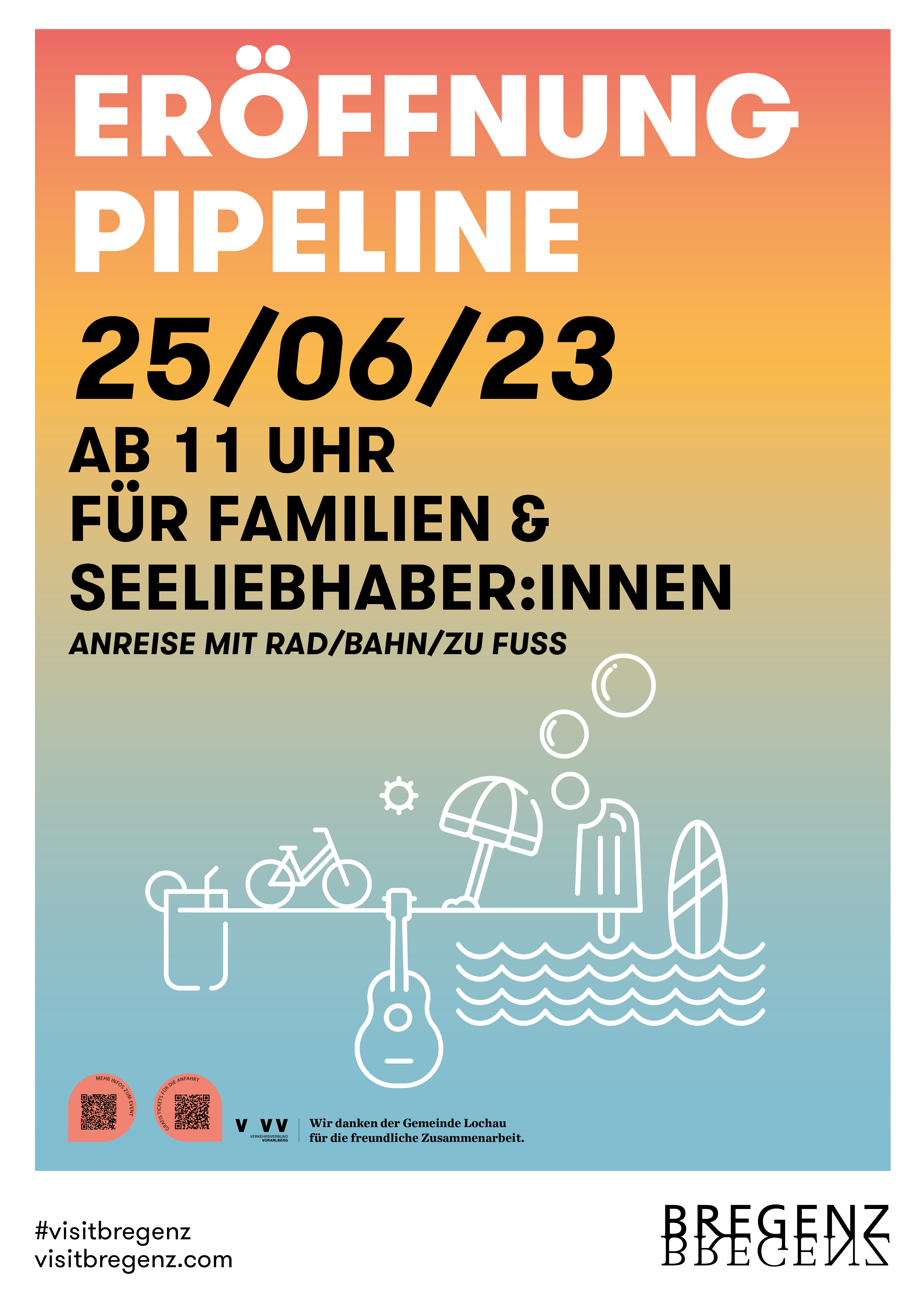 Die Stadt Bregenz freut sich zu den offiziellen Feierlichkeiten am Sonntag, den 25.06.2023, einzuladen. Diese Veranstaltung markiert die offizielle Eröffnung der "neuen Pipeline" und feiert die Sanierung und Neugestaltung des Seeufers zwischen Bregenz und Lochau.