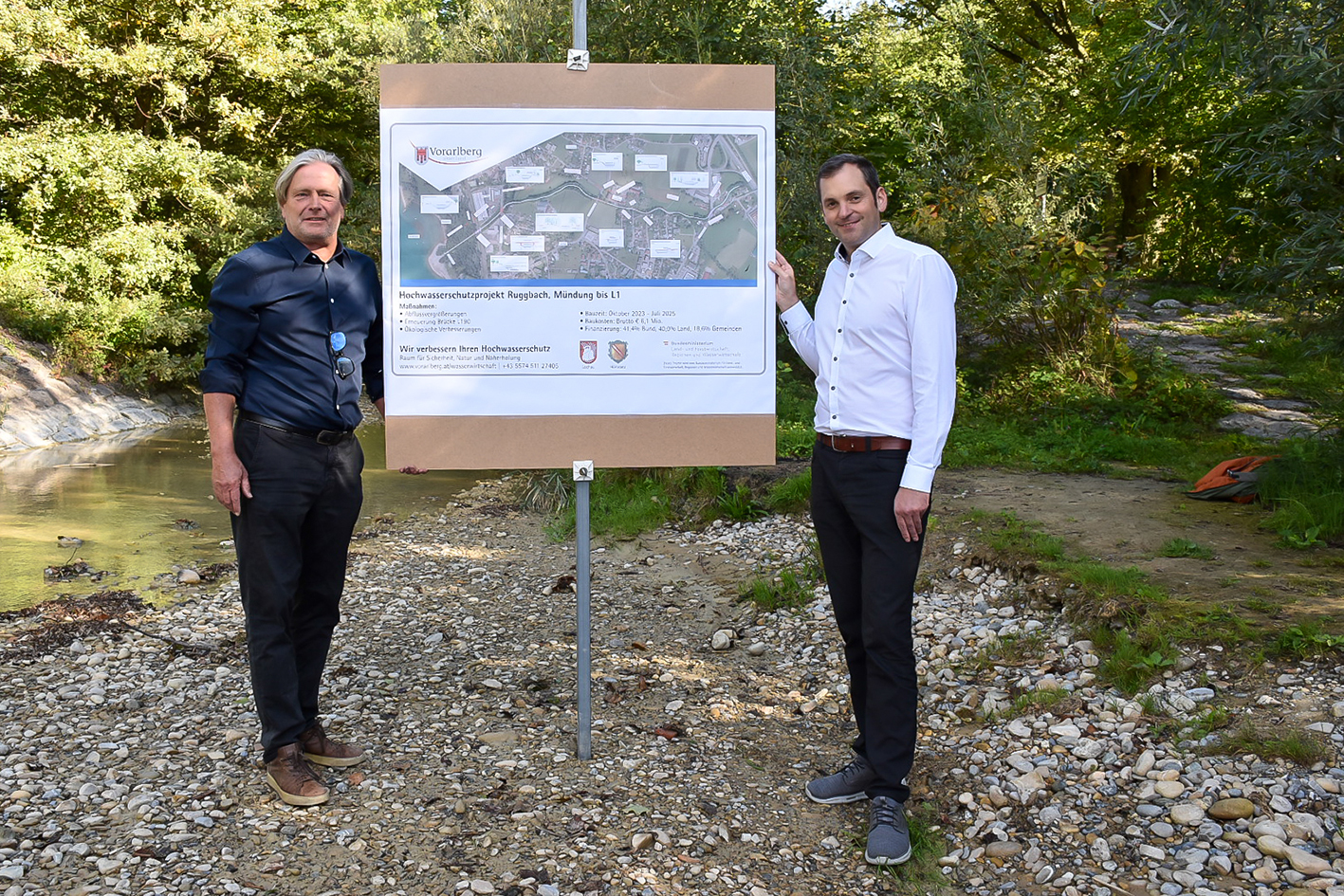 Der Lochauer Bürgermeister Dr. Frank Matt sprach den Verantwortlichen seine Hochachtung dafür aus, dass diese so großes Engagement bewiesen und bei den vielen geführten Gesprächen bzgl. Grundablösen etc. viele Hürden bewältigt haben. Der Hörbranzer Bürgermeister Andreas Kresser wiederum wies auf die sehr gute gemeindeübergreifende Zusammenarbeit der beiden Leiblachtalgemeinden hin: „Der Ruggbach trennt zwar die Gemeinden Hörbranz und Lochau voneinander, doch durch mehrere Brücken sind wir auch hervorragend miteinander verbunden.“