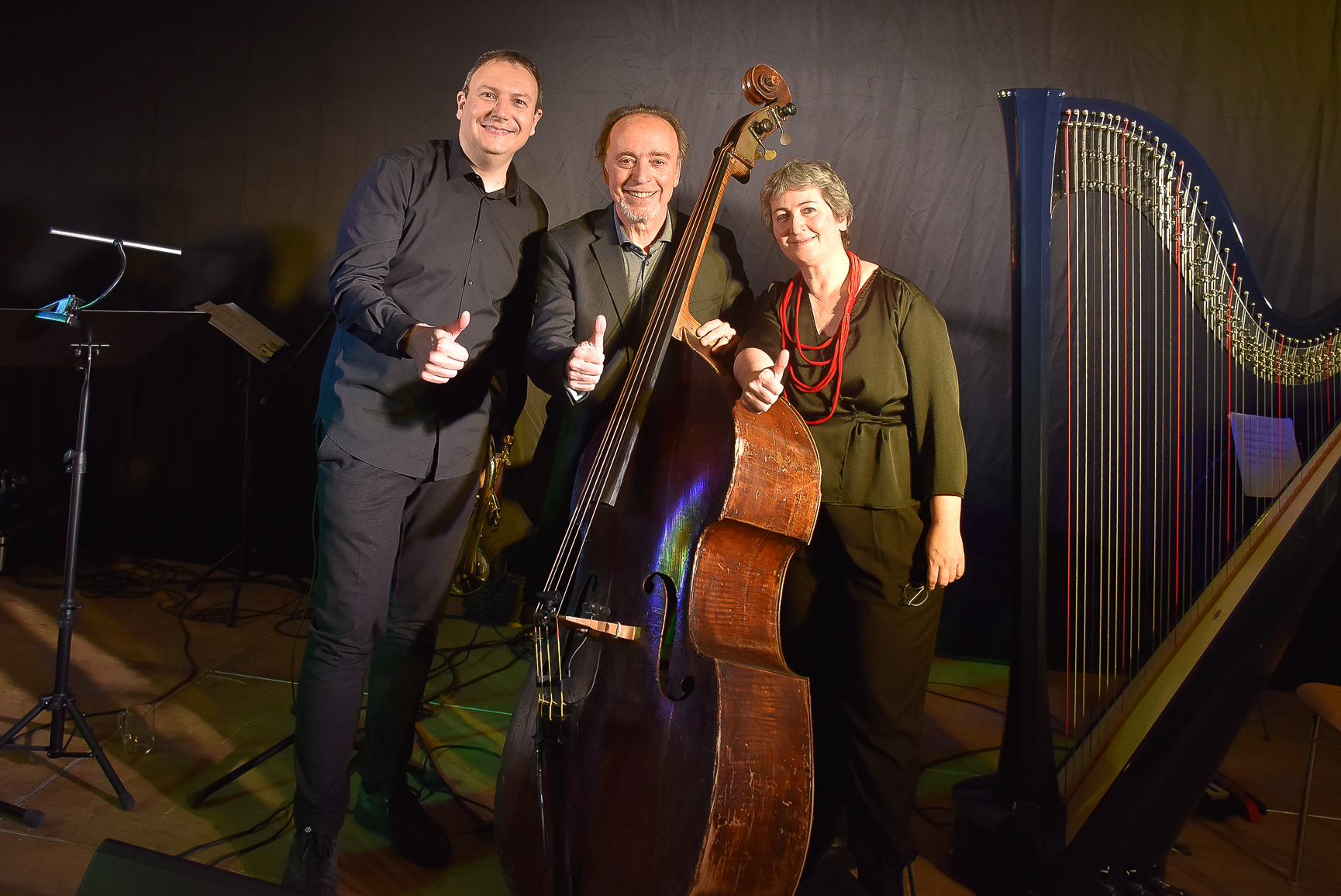 Rosario Bonaccorso, Botschafter des italienischen Jazz, moderierte mit seinem italienischen Charme durch den Abend. Seine ausdrucksstarken und mitreißenden Eigenkompositionen wurden am Kontrabass, der Trompete und der Harfe regelrecht zelebriert und von Bonaccorso auch teilweise gesanglich begleitet. Zwei Eigenkompositionen von Harfenistin Marcella Carboni wurden ebenfalls zum Besten gegeben.