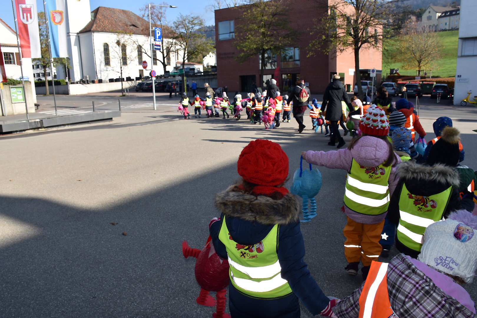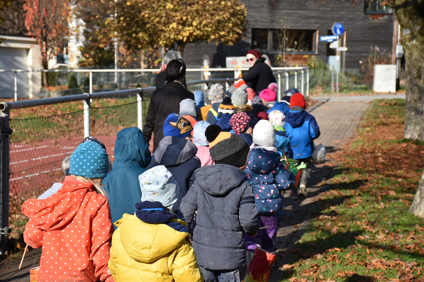In einem "normalen" Jahr werden abends die Eltern zum Feiern und zum Laternenmarsch eingeladen. Aber nachdem dies heuer leider nicht möglich ist, durften die Lochauer Kindergartenkinder in Begleitung der Kindergartenpädagoginnen und der AssistentInnen mit Stolz ihre schönen Laternen ausführen.