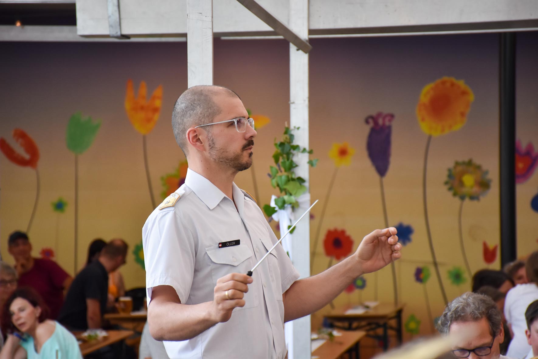 Unter der Leitung von Kapellmeister Major Wolfram Öller wurde ein flottes, modernes Repertoire mit bekannten Stücken unter anderem aus Animations- und Zeichentrickfilmen (z.B. Dschungelbuch, Batmann oder Star Wars) zum Besten gegeben. Aber auch traditionelle Stücke sowie eine inspirierende Zeitreise mit dem Werk „Lake of the Moon“, welche die Militärmusik in großartiger Weise präsentierte, veranlasste das Publikum kräftig nach Zugaben zu fordern. Die „Kleine Harmonie“ der Militärmusik sorgte im Anschluss für einen weiteren, sehr stimmungsvollen musikalischen Verlauf des Abends. Festbesucher Generalmajor Mag. Karl Redl i.R. nahm für ein Stück sogar den Platz des Schlagzeugers ein und beeindruckte mit seinem Können. Das Konzert in Lochau war für die jungen MusikerInnen der Militärmusik der erste Auftritt seit Beginn der Corona-Pandemie, daher auch für sie eine willkommene Abwechslung.