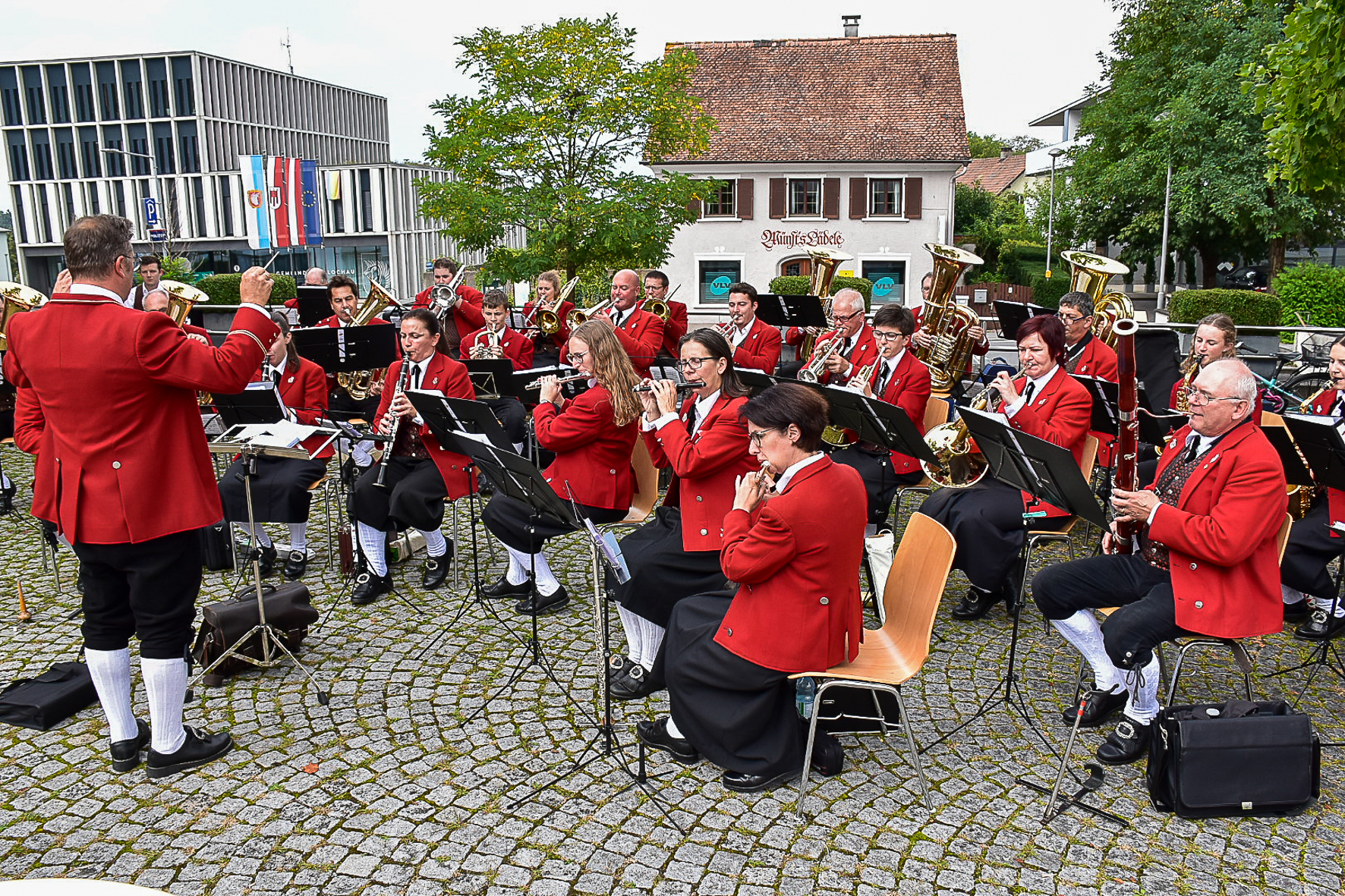 Bei bestem Wetter spielte der Musikverein Lochau draußen auf dem Pfarrplatz, während im Pfarrsaal rege nach Schnäppchen gestöbert werden konnte.