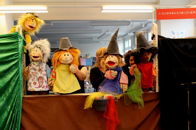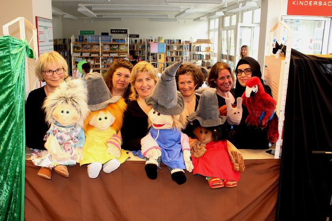 Die sechs Handpuppenspielerinnen der Theatergruppe „Die Vorstadtpuppen“ aus Bregenz entzauberten die graue Alltagswelt und entführten die jungen begeisterten Zuhörer schlussendlich in ein phantasievolles, farbenprächtiges Leseabenteuer.