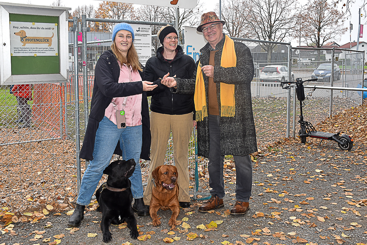 Am Freitag, den 7. November 2025, wurde die neue Hunde-Freilauffläche in Lochau offiziell eröffnet. Vizebürgermeister Stephan Schnetzer, Gemeinderätin Petra Böck und zahlreiche interessierte Hundehalter*innen waren vor Ort, um dieses Ereignis zu feiern.