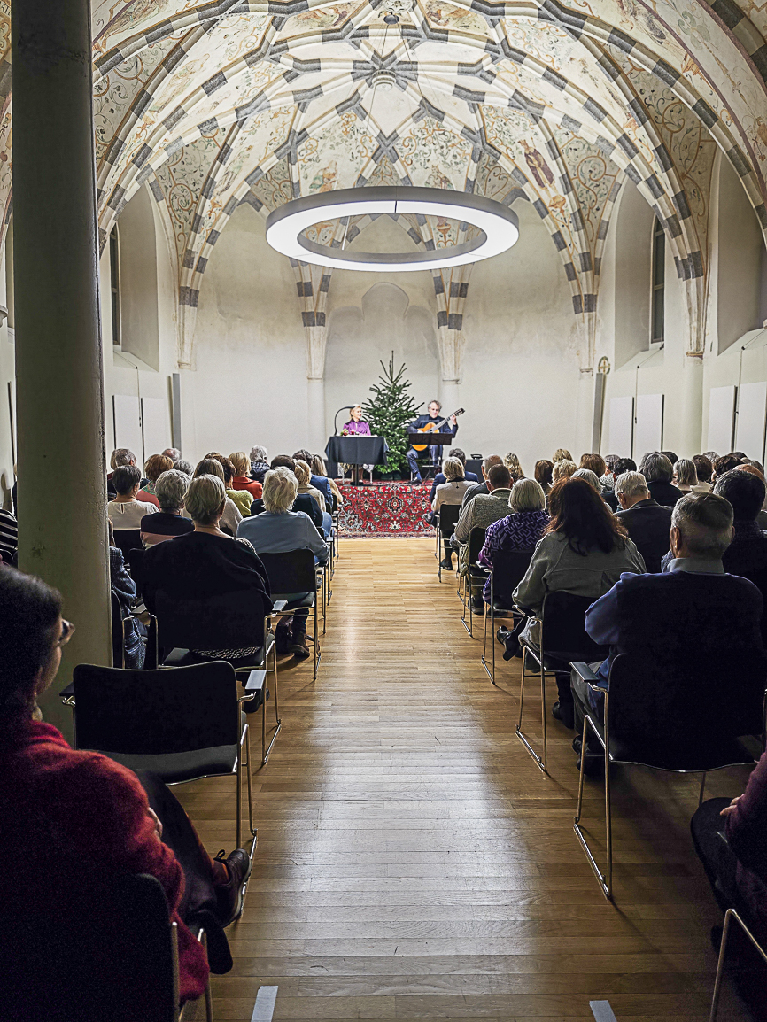 Der Musiker Alexander Swete begeisterte das Publikum mit virtuosen Gitarrenklängen und Schauspielerin Renate Bauer rezitierte ausgewählte besinnliche sowie humorvolle Texte von Karl Heinrich Waggerl und anderen Literaten.