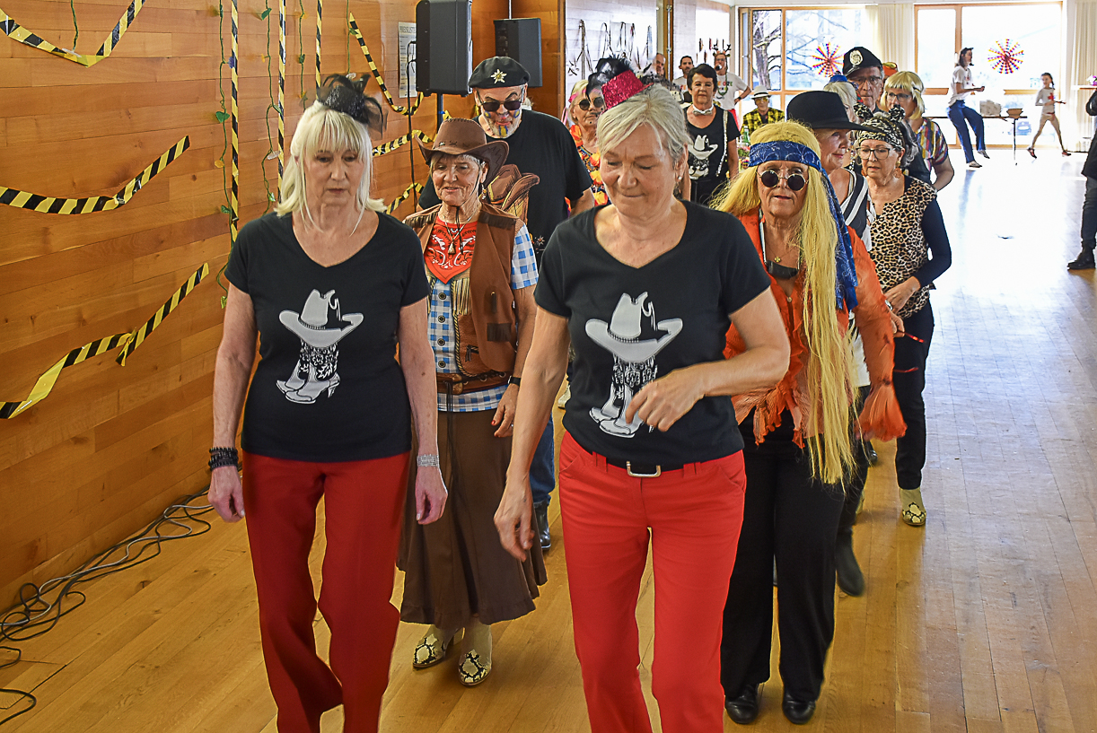 Die Lochauer Line-Dance Gruppe sorgte mit ihrer Choreografie als Show-Einlage ebenfalls für Abwechslung im Programm. Ein echtes Highlight war die energiegeladene Einlage von Marion Bumberger und ihrem Team. Beim Stück „Wackelkontakt“ standen alle „unter Strom“ und zwar so, dass die berühmten 100.000 Hände in der Luft problemlos erreicht wurden. Es wurde gesungen, getanzt und gelacht, und irgendwann wussten alle ganz genau, wie man „oben, unten, vorne, hinten, rechts und links gute Laune“ verbreitet.