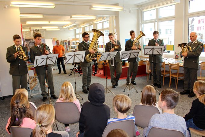 Das war beste Werbung für die Blasmusik. Der Musikverein Lochau hatte alle Klassen der Volksschule zu vier abwechslungsreichen „Musikstunden mit der Militärmusik“ in die Räumlichkeiten der Schulbücherei eingeladen.