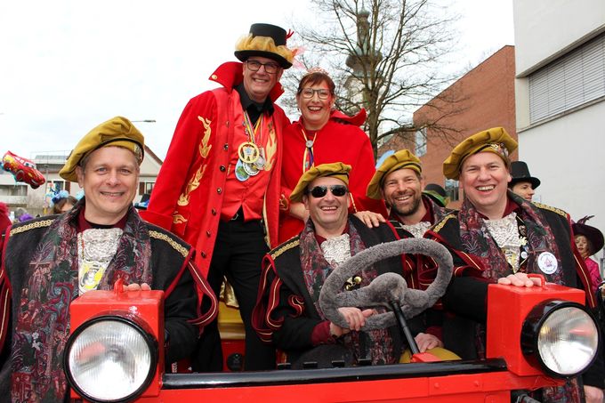 Mit „Ore, Ore“, „Ruggi, Ruggi – Hoo“, „Gwigga, Gwigga – Hoo“, „Ure, Ure, Hafaloab“, „Ore, Ore – Türbolar“, „Narro Publikum – Hoi“, „Maschgara, Maschgara – Rollollo“, „Zig, Zig – Ziegenau“, „Villa Villa – Fossonas“, „Duri, Duri – Duri-O“ oder „He wo a Wildsau“ sowie viel schräger Musik wälzte sich der närrische Zug mit rund fünfzig originellen Gruppen und dekorativen Faschingswagen nur langsam durch das dichte Zuschauerspalier zur großen gemeinsamen närrischen Faschingsparty im Schulhof und in der Festhalle.