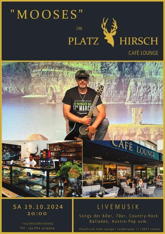 - Platzhirsch LochauLive Musik mit Mooses am Samstag den 19.10.2024 ab 20:00 Uhr.