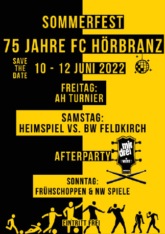 11:00 Uhr: Frühshoppen mit dem Musikverein Hörbranz Nachwuchsspiele: U11 - 11:00 Uhr; U12 - 13:00 Uhr